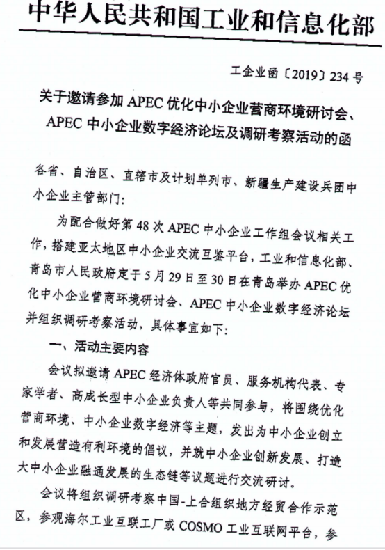 关于邀请参加APEC优化中小企业营商环境研讨会,APEC中小企业数字经济论坛及调研考察活动函