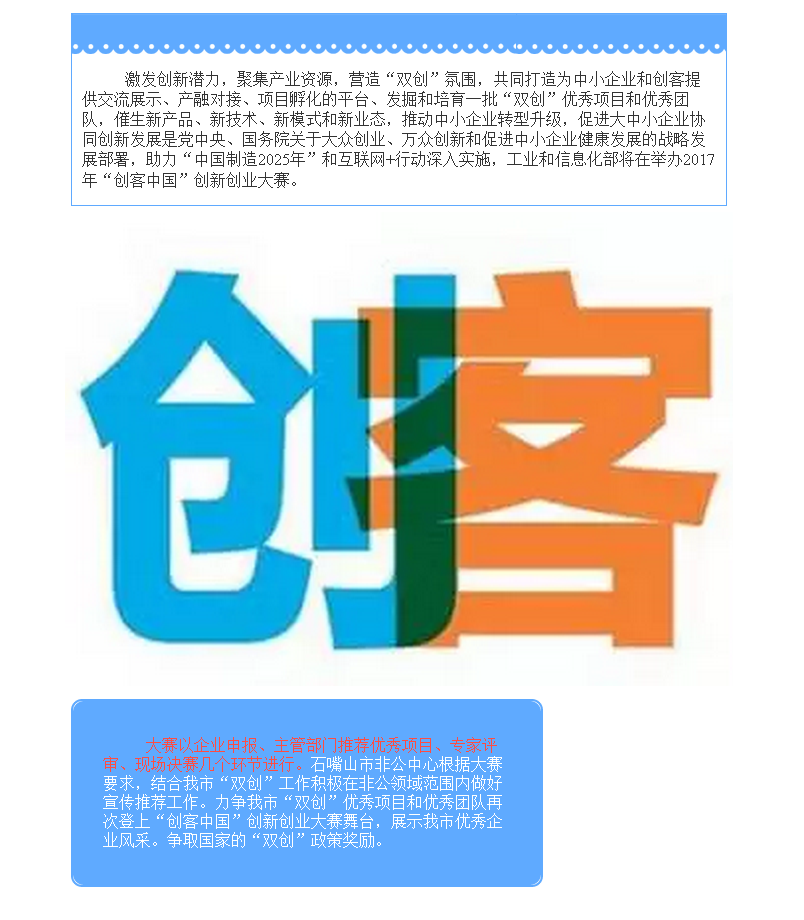 石嘴山市非公经济服务中心认真做好“创客中国” 创业创新大赛宣传推荐工作