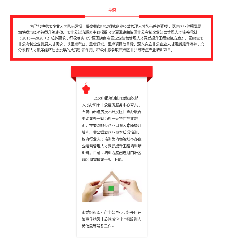 市非公经济中小积极争取培训项目筹划非公企业出资人高层经营管理 人才培训班