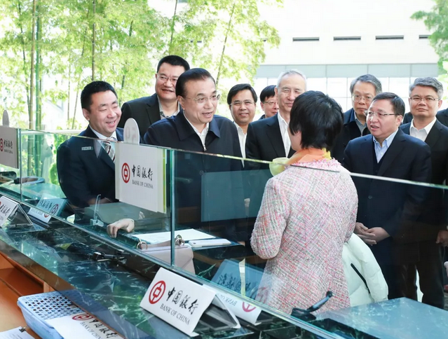 李克强先后来到中行营业厅和工行、建行的普惠金融事业部,了解小微企业贷款规模、成本和便利情况,对他们瞄准小微企业融资难点、运用“互联网+”等创新模式、增加小微企业贷款和降低成本予以肯定。李克强说,稳就业主要靠千千万万小微企业,小微企业发展离不开普惠金融支持。普惠金融是利国利民的大事业,前景无限。他勉励几家国有大型银行要带头为民营、小微企业提供细致周到的服务,借鉴国际经验,打造普惠金融金字招牌,促进市场主体活力的普遍增强,提振企业发展的信心。