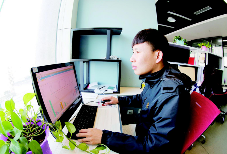 近日,入驻e+青年电子商务创业孵化园的企业职工在孵化园内办公。
