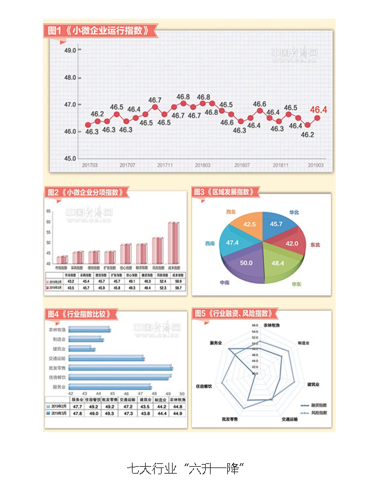 2019年3月份,“经济日报-中国邮政储蓄银行小微企业运行指数”(见图1)为46.4,较上月上升0.2个点,本月小微企业运行有所回升。
